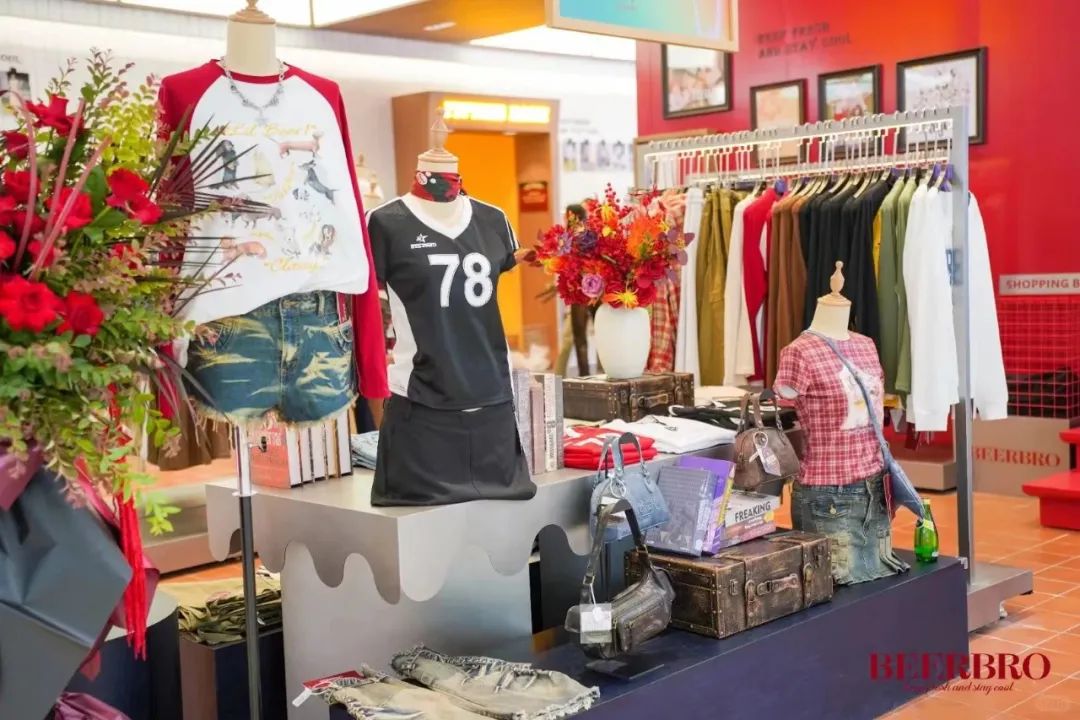 以武漢銀泰百貨為例,從2023年年底開(kāi)始,武漢銀泰將一樓定位調(diào)整為潮牌、時(shí)尚品類,引入十多家本土新銳潮牌,囊括了美式復(fù)古、少女潮牌、國(guó)產(chǎn)潮鞋等多種細(xì)分風(fēng)格,其中BEASTER、BEERBRO、FPA等均是首進(jìn)武漢。在店鋪設(shè)計(jì)和視覺(jué)風(fēng)格上,這些品牌注重營(yíng)造獨(dú)特的潮流氛圍,讓消費(fèi)者耳目一新。