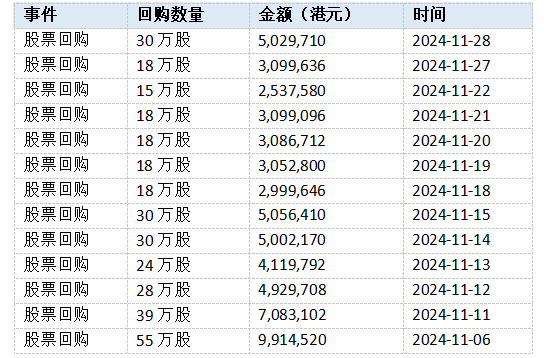 11月以來(lái),蒙牛股票回購(gòu)情況,36氪制表