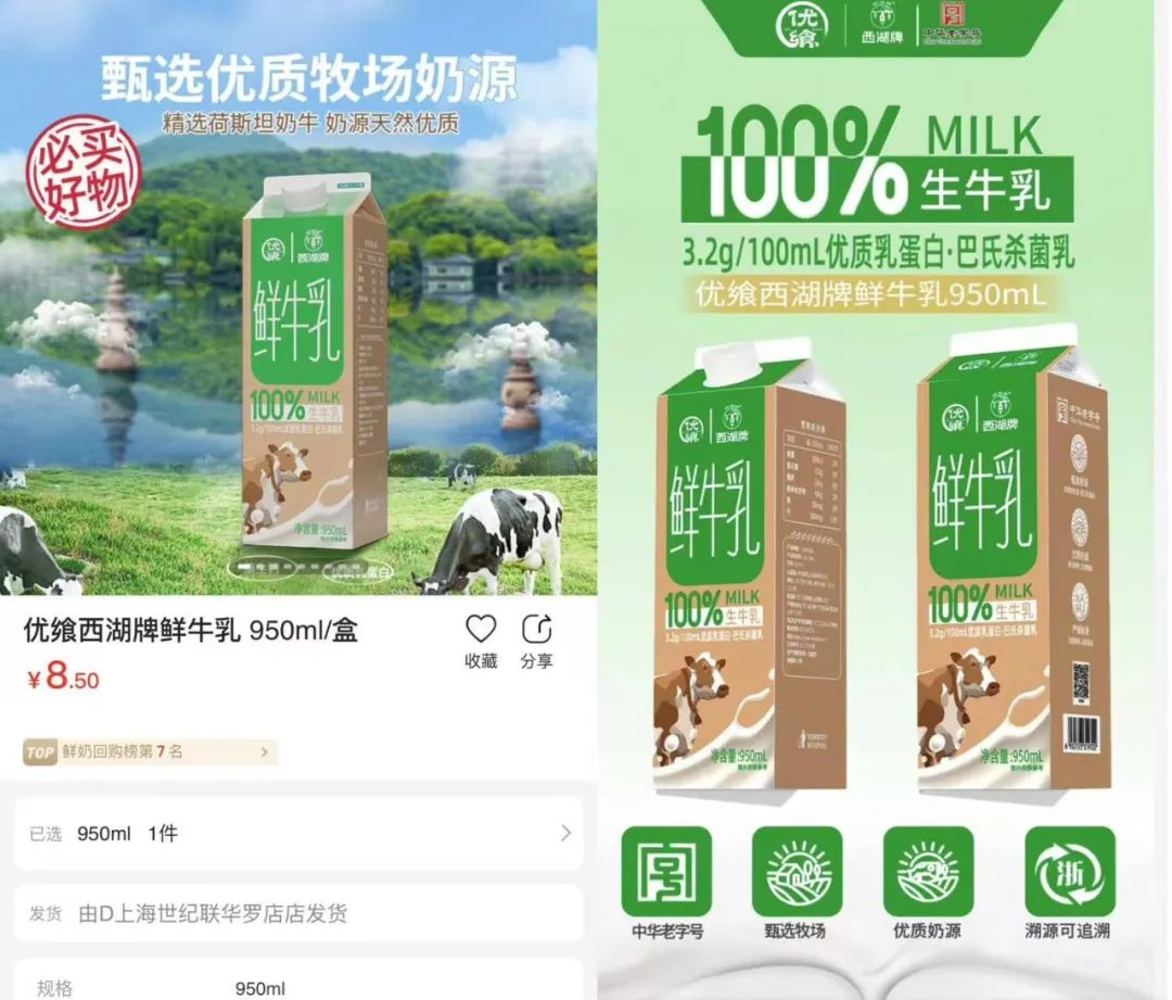 在售一款“大單品”是聯(lián)華自有品牌,蛋白質(zhì)3.2g,950ml的巴士殺菌牛奶,售價僅8.5元。為打造這個單品,聯(lián)華“先定價,后尋源”,走訪南京、江蘇、上海、金華等地10 家工廠,采用直采或現(xiàn)結(jié)方式,從產(chǎn)品設(shè)計、定價,庫存,到運營全流程參與管理。目前,這款牛奶占住了這個容量的“超值”價格段。