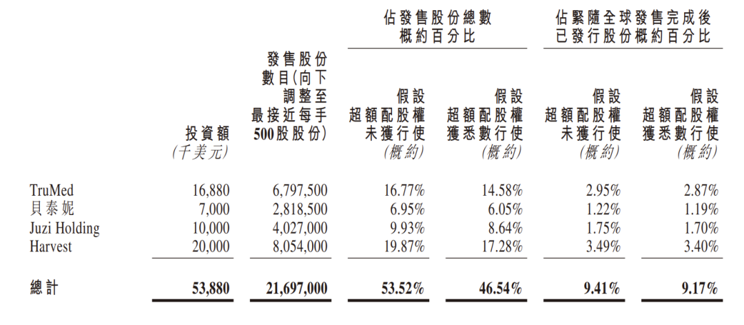 值得關(guān)注的是,毛戈平此次IPO招股引入了6名基石投資者。其中,CPE Investment認(rèn)購3500萬美元(約2.55億元人民幣,下同),正心谷資本認(rèn)購2000萬美元(約1.46億元),ACCF Capital通過Seraphim Advantage認(rèn)購1500萬美元(約1.09億元),常春藤基金認(rèn)購1000萬美元(約7288.63萬元),Brilliant Partners Fund LP及China Core Fund認(rèn)購1000萬美元(約7288.63萬元),大灣區(qū)共同家園投資(GBAHIL)通過Mega Prime認(rèn)購1000萬美元(約7288.63萬元),合共認(rèn)購1億美元(約7.29億元)的發(fā)售股份,占全球發(fā)售比例的39.31%。