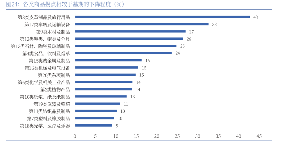 其中,平價(jià)美妝產(chǎn)品消費(fèi)者對(duì)價(jià)格敏感度高,品類所受的影響可參照食品飲料等消費(fèi)類產(chǎn)品,這些品類受關(guān)稅影響較基準(zhǔn)下降幅度為24%,下降周期約15個(gè)月,隨后進(jìn)入修復(fù)周期( 中國(guó)銀河證券 );