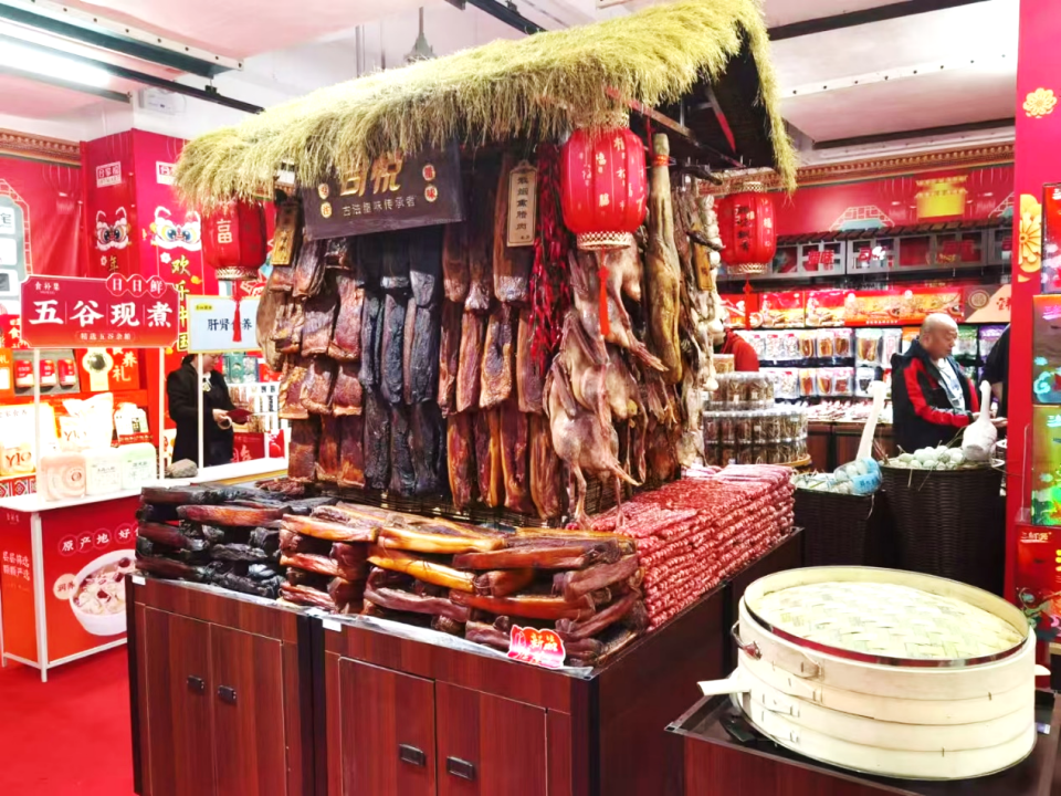 在啟動(dòng)儀式現(xiàn)場(chǎng),百大合家福搭建了一個(gè)占地1500平方米“七大場(chǎng)景”年貨展,匯聚了來自全國(guó)各地的供應(yīng)商帶來的各式年貨商品。這些商品涵蓋了生鮮、食品、日用品、禮品等多個(gè)品類,且均為最新、最潮的年貨產(chǎn)品。