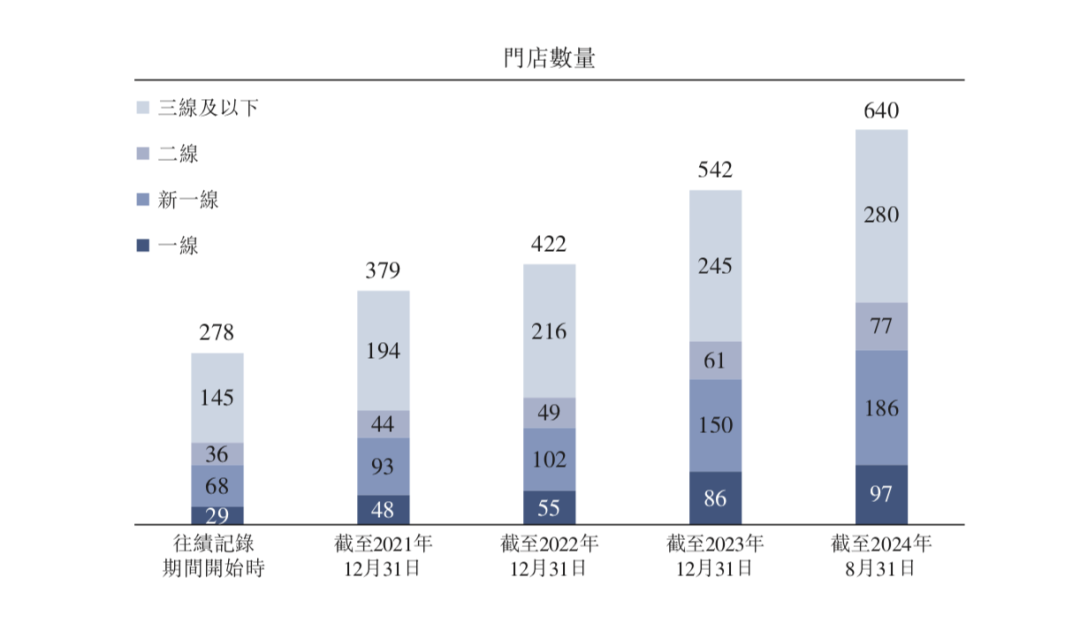 截至2024年11月26日,小菜園在中國14個省的146座城市/縣擁有663家直營門店,其中包括658家“小菜園”門店及5家其他子品牌門店。其中,2021年至2023年以及今年前8個月,小菜園分別新開107家、48家、132 家以及109家門店。