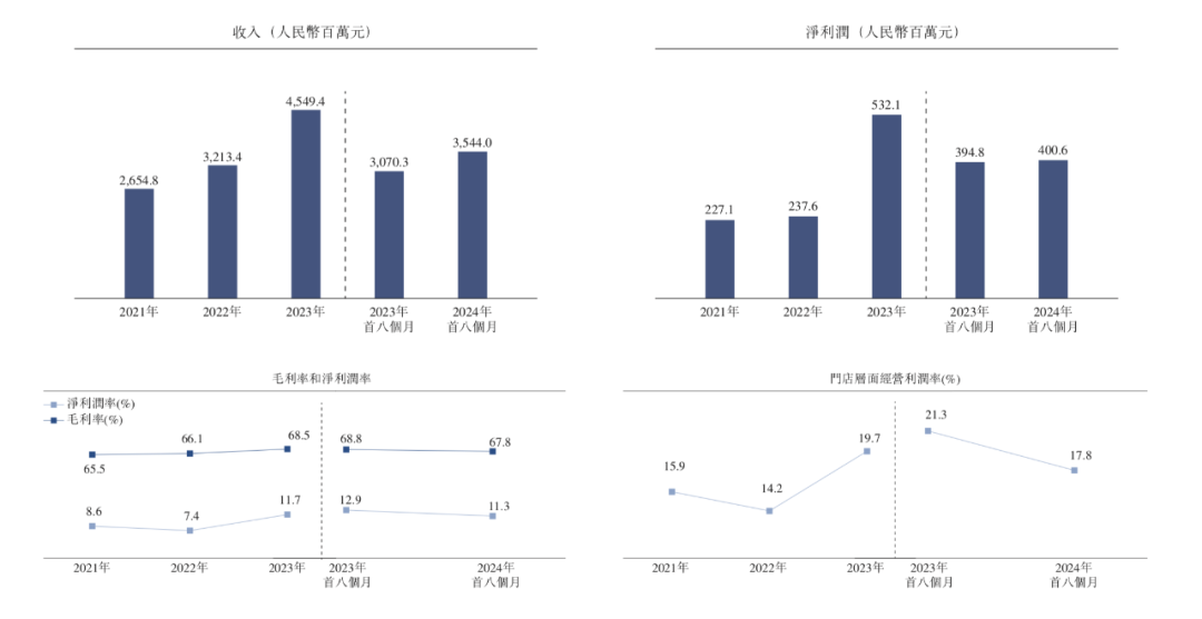 在客流量方面。2021年至2023年,“小菜園”門店的堂食顧客總數(shù)分別約為3330百萬、3270萬和4630萬。根據(jù)弗若斯特沙利文的資料,表現(xiàn)優(yōu)于同業(yè)。今年前8個月,“小菜園”門店的堂食顧客總數(shù)從2023年同期的約3210萬增加15.2%至3700萬。