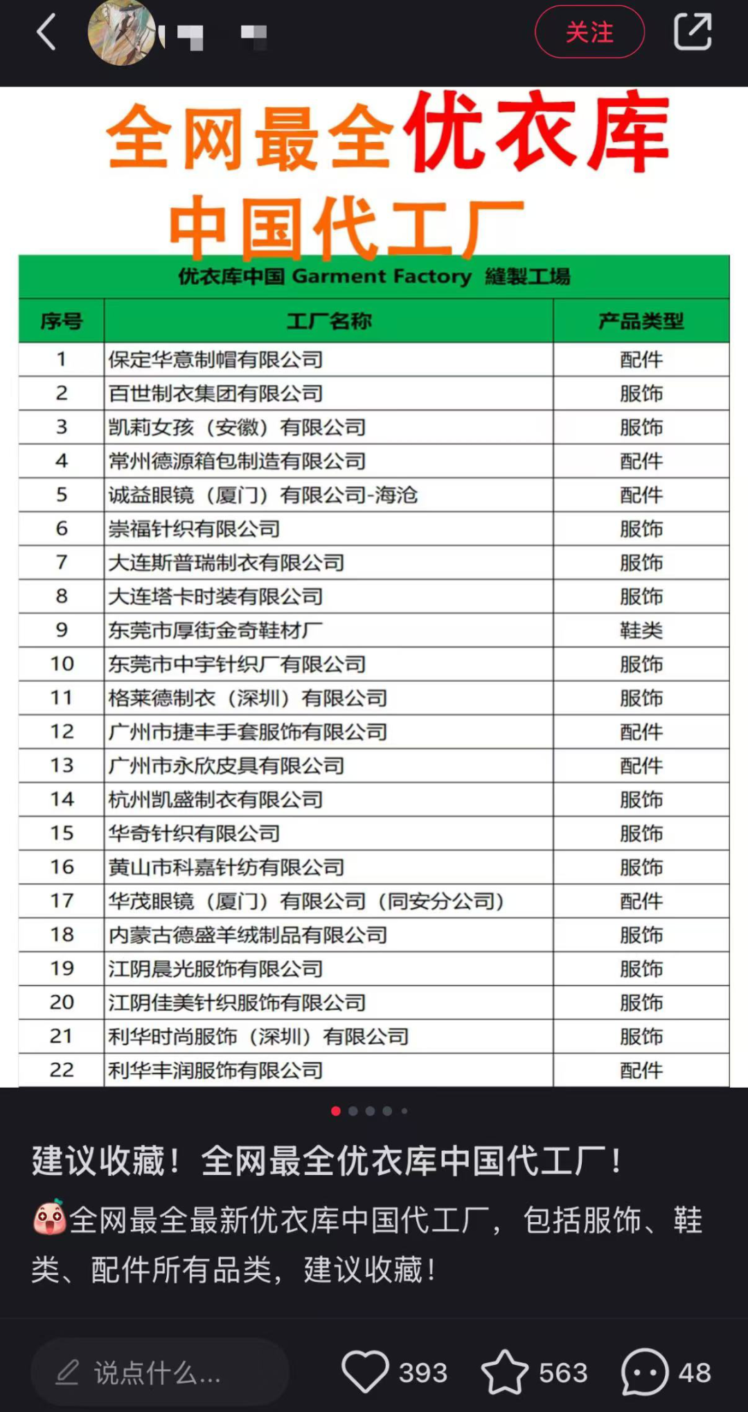 中國還是優(yōu)衣庫核心服裝生產(chǎn)地。截至2024年9月的優(yōu)衣庫全球工廠合作名單顯示,集團(tuán)在中國境內(nèi)承擔(dān)主要生產(chǎn)工廠、加工工廠總計(jì)269家,排名第二的越南生產(chǎn)基地相關(guān)工廠僅75家,排名第三的孟加拉32家。