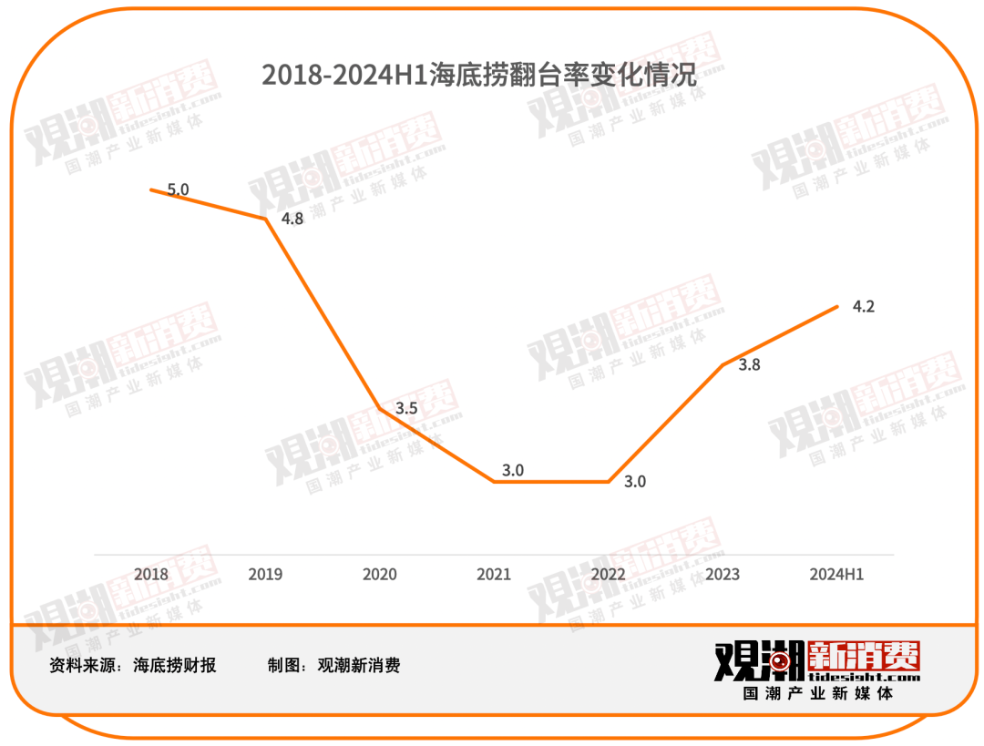 直至今日,海底撈的啄木鳥(niǎo)計(jì)劃成效初顯,2024年上半年的翻臺(tái)率增長(zhǎng)至4.2次/天,已經(jīng)達(dá)成當(dāng)初定下的目標(biāo)。 但從財(cái)報(bào)來(lái)看,翻臺(tái)率的增長(zhǎng)似乎并不意味著業(yè)績(jī)的回暖。