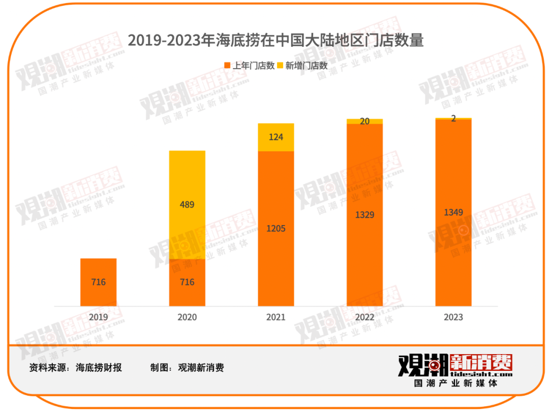 2020年,海底撈創(chuàng)始人張勇提出拓店計(jì)劃。計(jì)劃之下,海底撈蒙眼狂奔,僅2020年就在中國(guó)大陸地區(qū)開(kāi)出489家門店,2020-2021年這兩年間,海底撈的新增門店數(shù)量是此前25年總和的1.1倍。