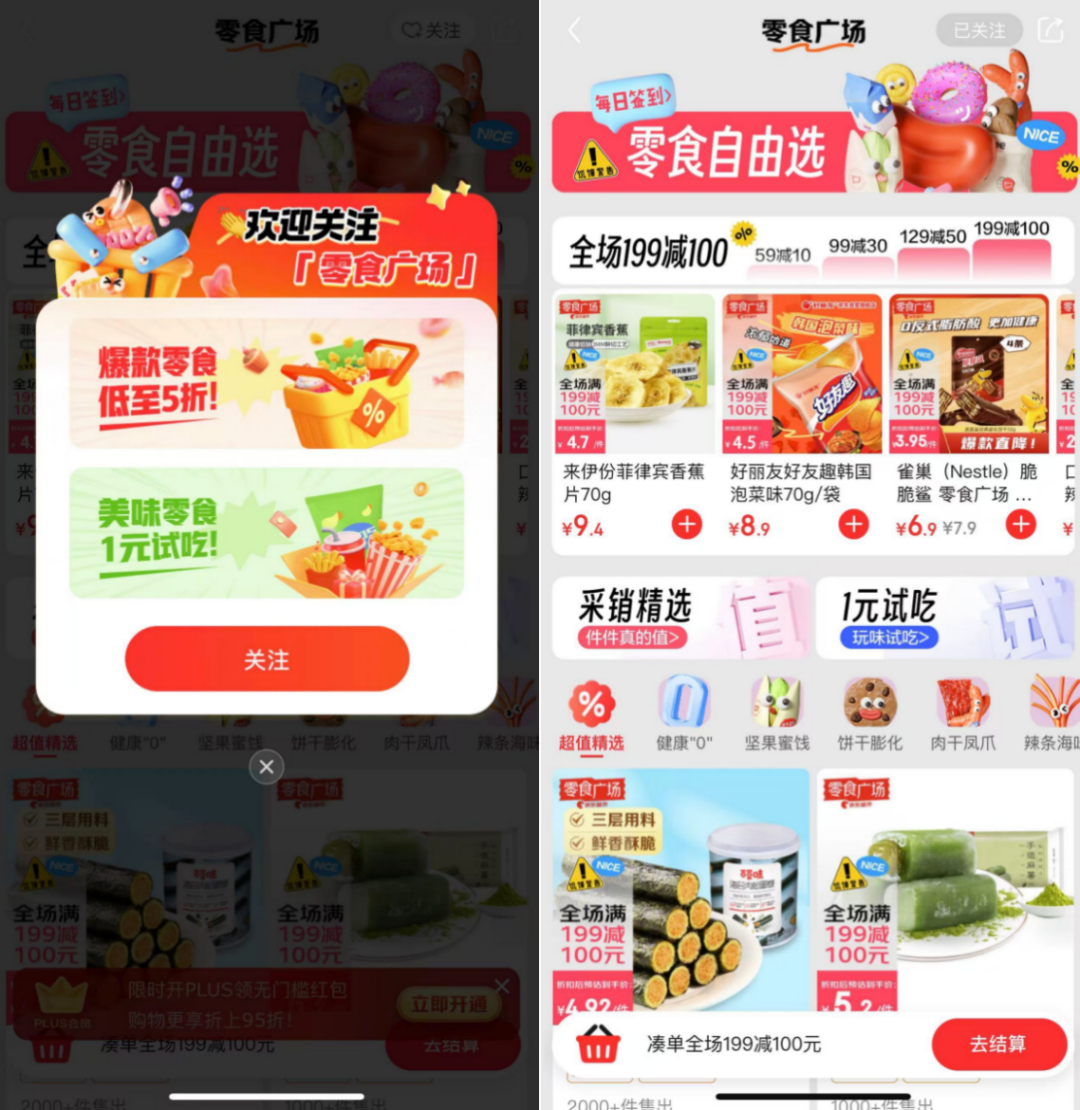 除了在生鮮調(diào)味這類高頻剛需品類上的發(fā)力外,京東超市還于雙11前夕低調(diào)上線“零食廣場”專區(qū),這被視作基于自營零售的規(guī)模成本優(yōu)勢,以及自建物流的敏捷調(diào)整優(yōu)勢,進軍零食折扣行業(yè)的快速試水。