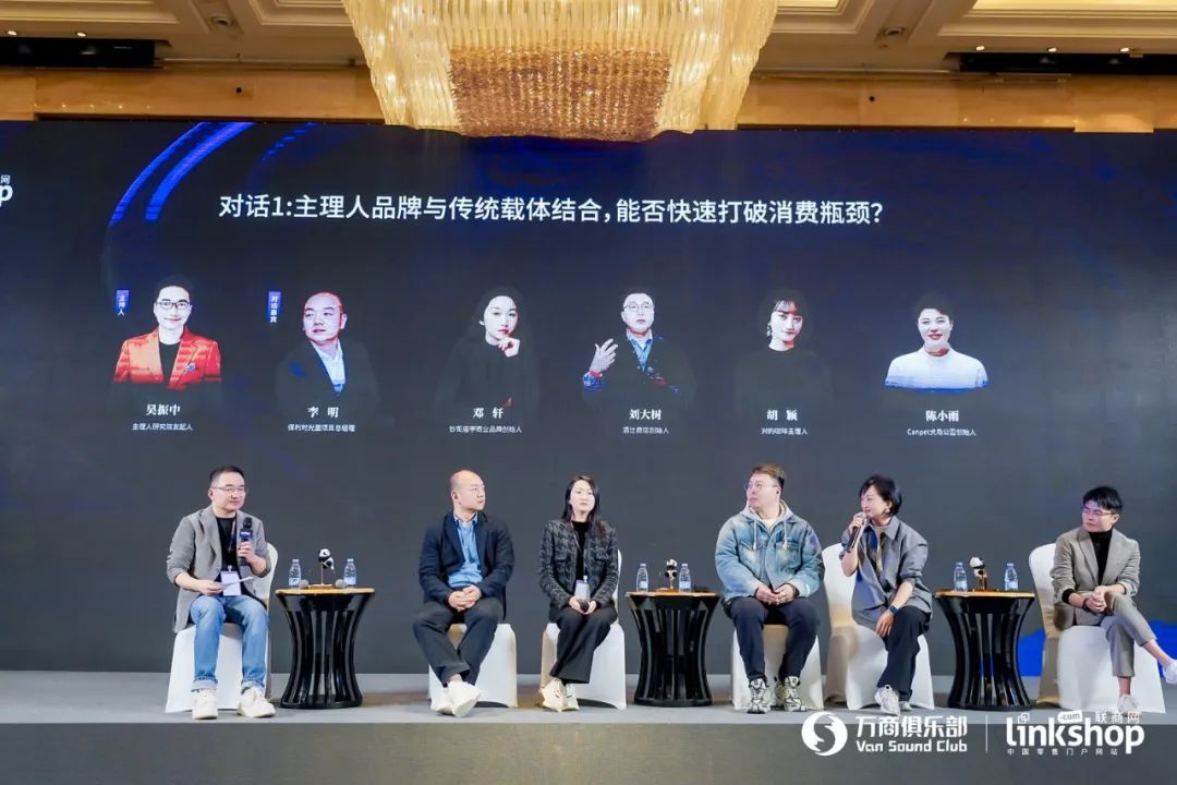 主題演講結(jié)束之后,圓桌討論會正式開始,主題1是《主理人品牌與傳統(tǒng)載體結(jié)合能否快速打破消費瓶頸?》。主理人研究院發(fā)起人吳振中作為主持人,同5位嘉賓探討了主理人品牌與傳統(tǒng)載體結(jié)合能否快速打破消費瓶頸。