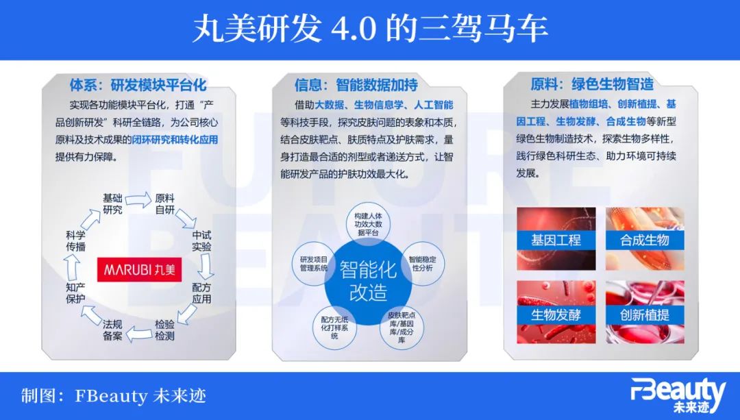 據(jù)《FBeauty未來跡》了解,整個第四代研發(fā)體系由“平臺化的研發(fā)模塊”“智能數(shù)據(jù)”和“綠色生物智造”三駕馬車驅(qū)動。