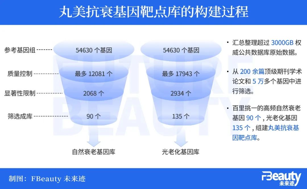 據(jù)《FBeauty未來跡》了解,目前丸美生物已經(jīng)建立起了由23個眼部測試參數(shù)和7個眼部測試區(qū)域構(gòu)成的“人體功效大數(shù)據(jù)平臺”,可交叉測評38個眼部參數(shù),實現(xiàn)測試數(shù)據(jù)的實時上傳和匯總。此外,丸美生物還從5萬多個基因中經(jīng)過篩選,挑選出了90個高頻自然衰老基因和135個光老化基因構(gòu)建了“丸美抗衰基因靶點庫”。