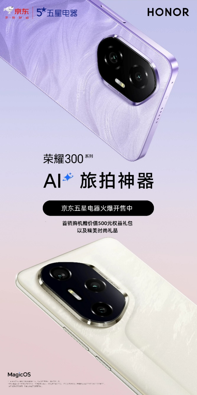 據(jù)悉,榮耀300系列涵蓋榮耀300、榮耀300Pro和榮耀300Ultra三款機(jī)型,起售價(jià)分別為2499元、3399元和4199元。感興趣的消費(fèi)者可到京東MALL、京東電器城市旗艦店、京東五星電器等京東自營(yíng)線下門店體驗(yàn)真機(jī),江蘇消費(fèi)者可參與補(bǔ)貼15%活動(dòng)。