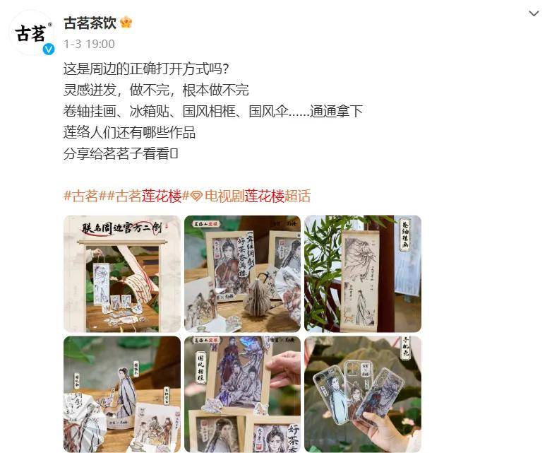 IP聯(lián)名往往也是快速撬動高銷量的利器。此前古茗與《蓮花樓》的聯(lián)名,上線銷售不到1分鐘,古茗小程序便因訪問人數太多而宕機;今年古茗與《蓮花樓》再次合作,開售10多分鐘,多家門店的相關聯(lián)名款產品便宣布售罄。