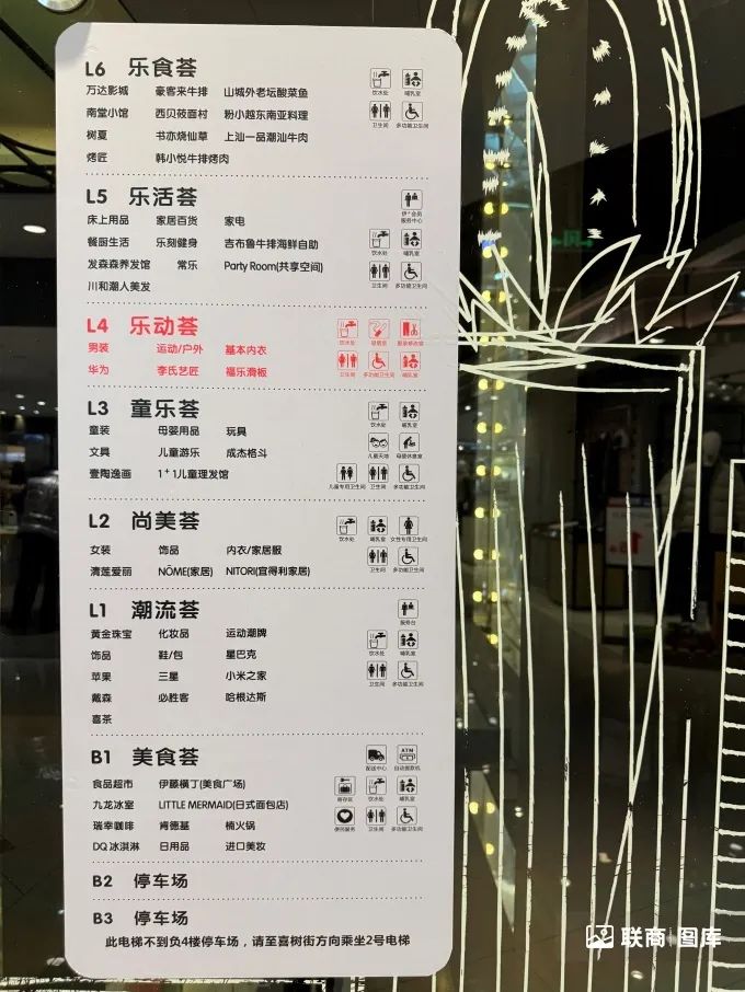 成都伊藤廣場一共9層,其中地下2層和地下3層是停車場,地下1層至地上6層共7層的商業(yè)部分,包括了食品超市、服飾鞋帽、珠寶首飾、兒童樂園、家居生活、餐飲、運(yùn)動(dòng)健身、休閑娛樂等全業(yè)態(tài)品牌,滿足了大眾的多元化消費(fèi)需求。比如星巴克、喜茶、樂高、NITORI、NOME、三星、戴森、波司登、NIKE、New Blance、伊藤橫丁(美食廣場)等品牌。