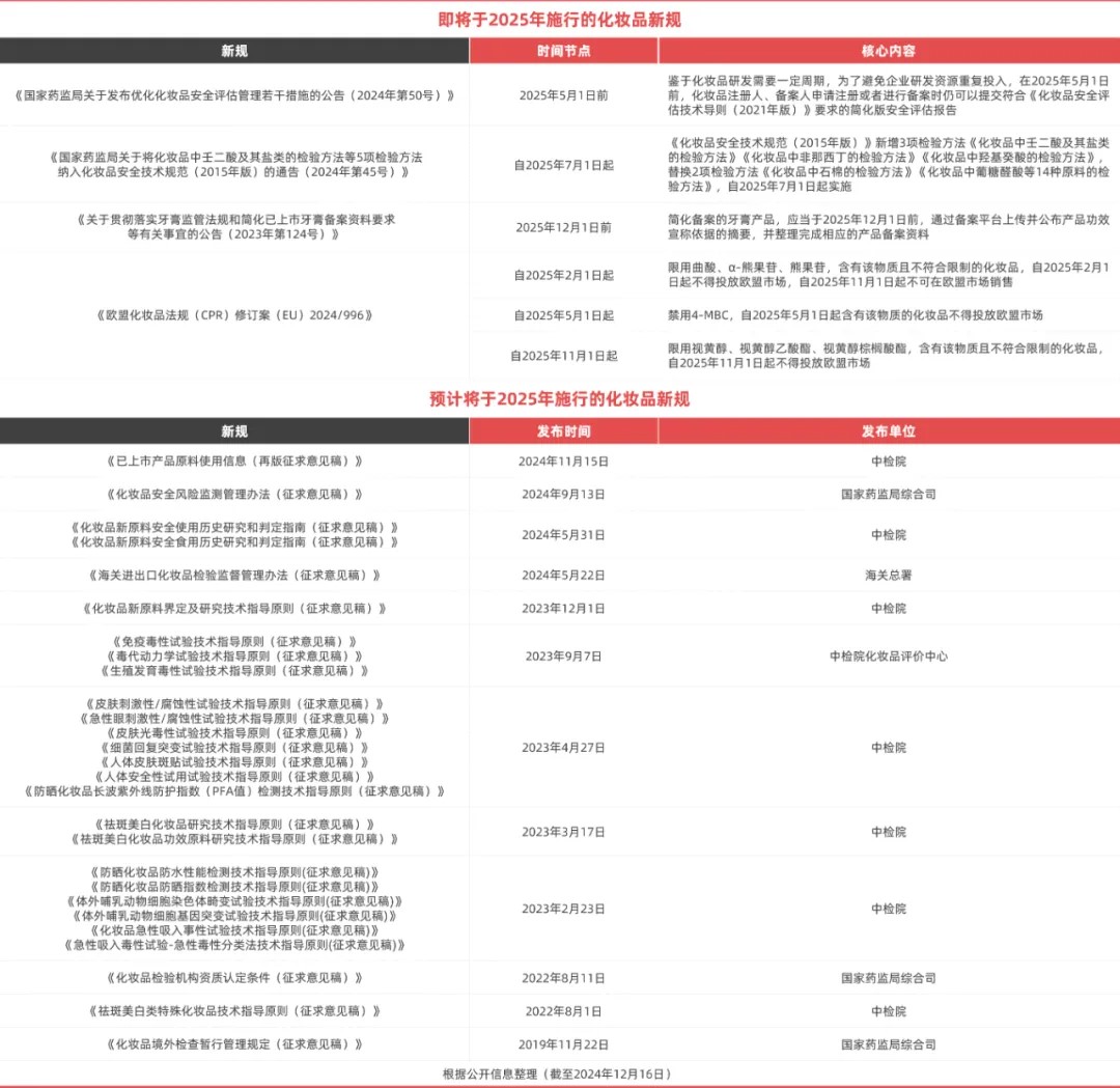 與此同時(shí),《化妝品安全風(fēng)險(xiǎn)監(jiān)測(cè)管理辦法(征求意見(jiàn)稿)》等二十余部新規(guī)呼之欲出,大概率將在2025年落地執(zhí)行,也就是說(shuō),化妝品企業(yè)頭上的“緊箍咒”將進(jìn)一步收緊。