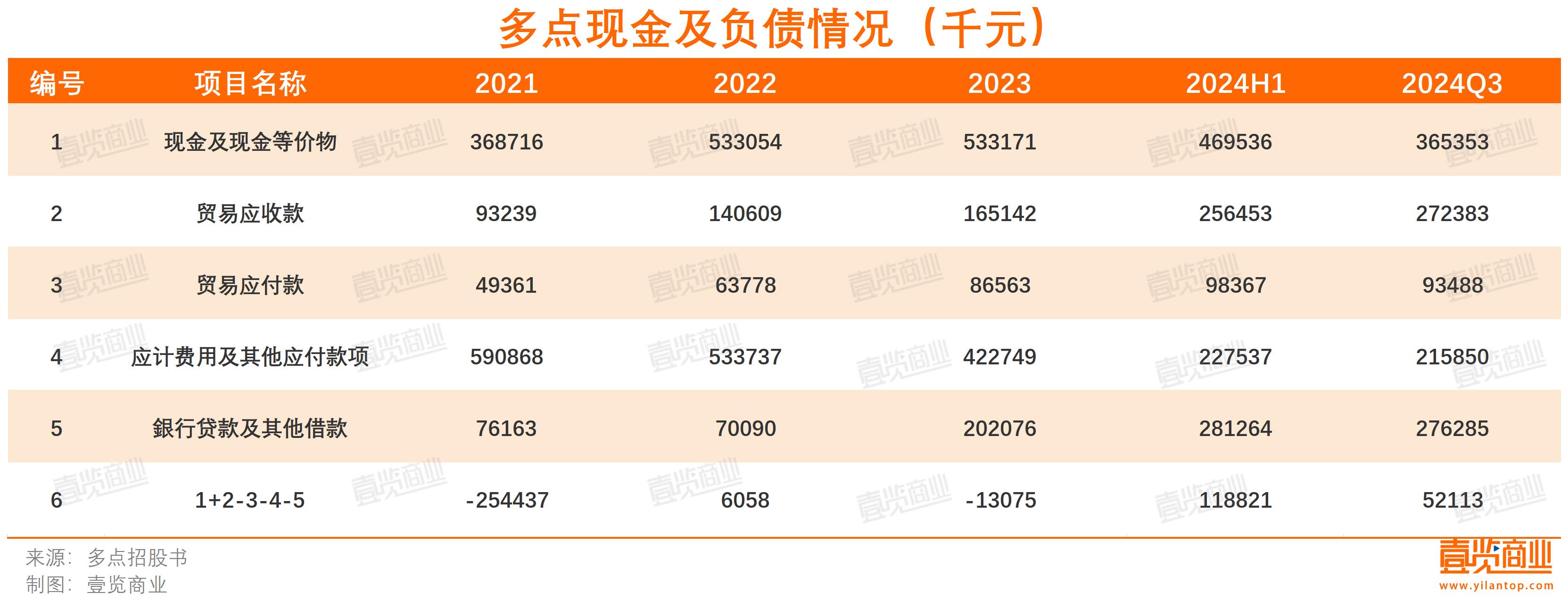 在虧損不止的情況下,多點(diǎn)一直靠貸款、融資來(lái)維持正常的運(yùn)轉(zhuǎn)。招股書顯示,2021—2023年,多點(diǎn)通過(guò)融資活動(dòng)獲得的現(xiàn)金凈額分別為8.34億、2.82億、2.07億,今年前三季度,銀行貸款及其他借款金額也攀升至2.76億。
