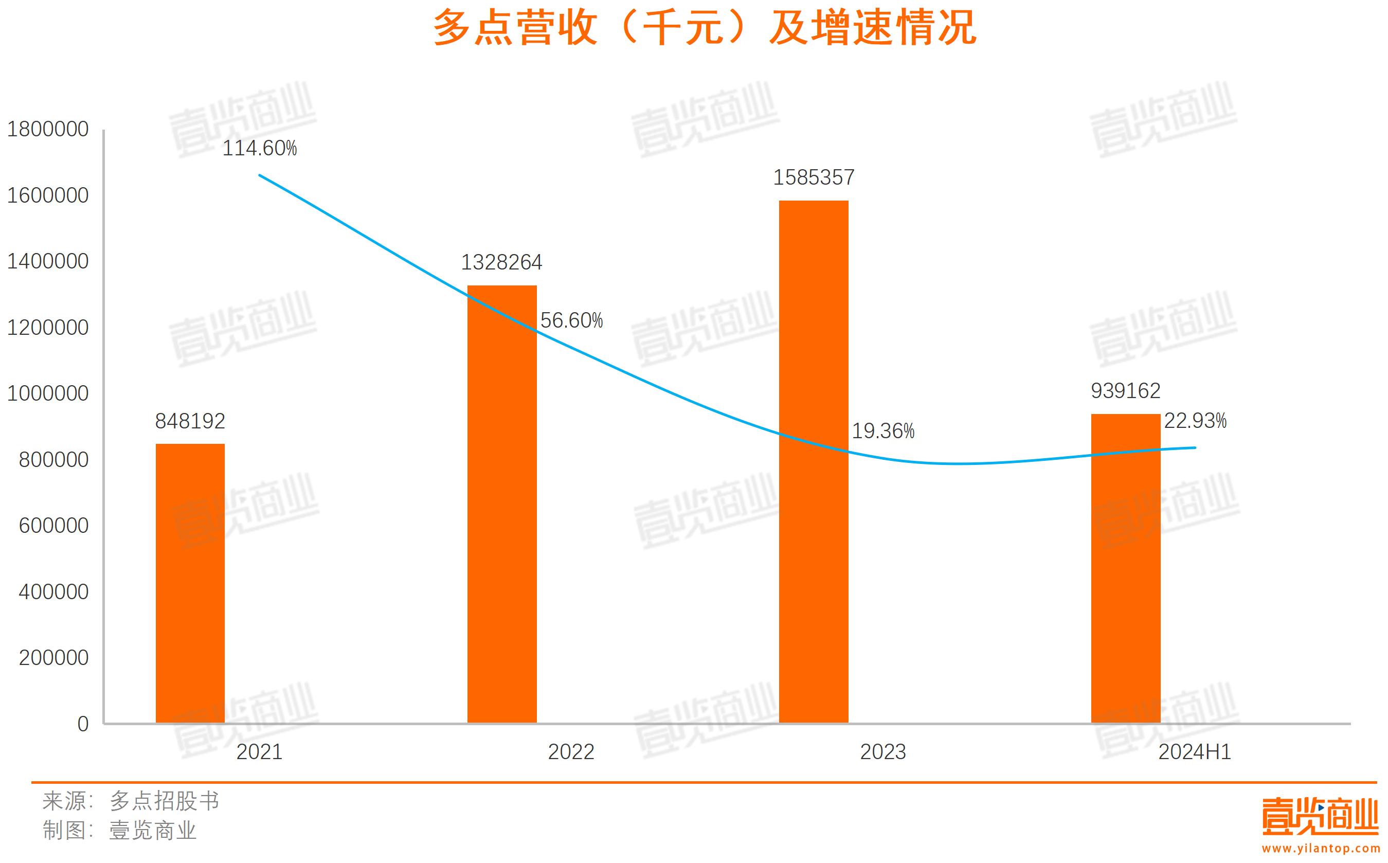 從營(yíng)收看,多點(diǎn)的表現(xiàn)尚算穩(wěn)健。截至報(bào)告期各期末,多點(diǎn)營(yíng)收分別為8.48億元、13.28億元、15.85億元和9.39億元,增速也維持在15%以上。