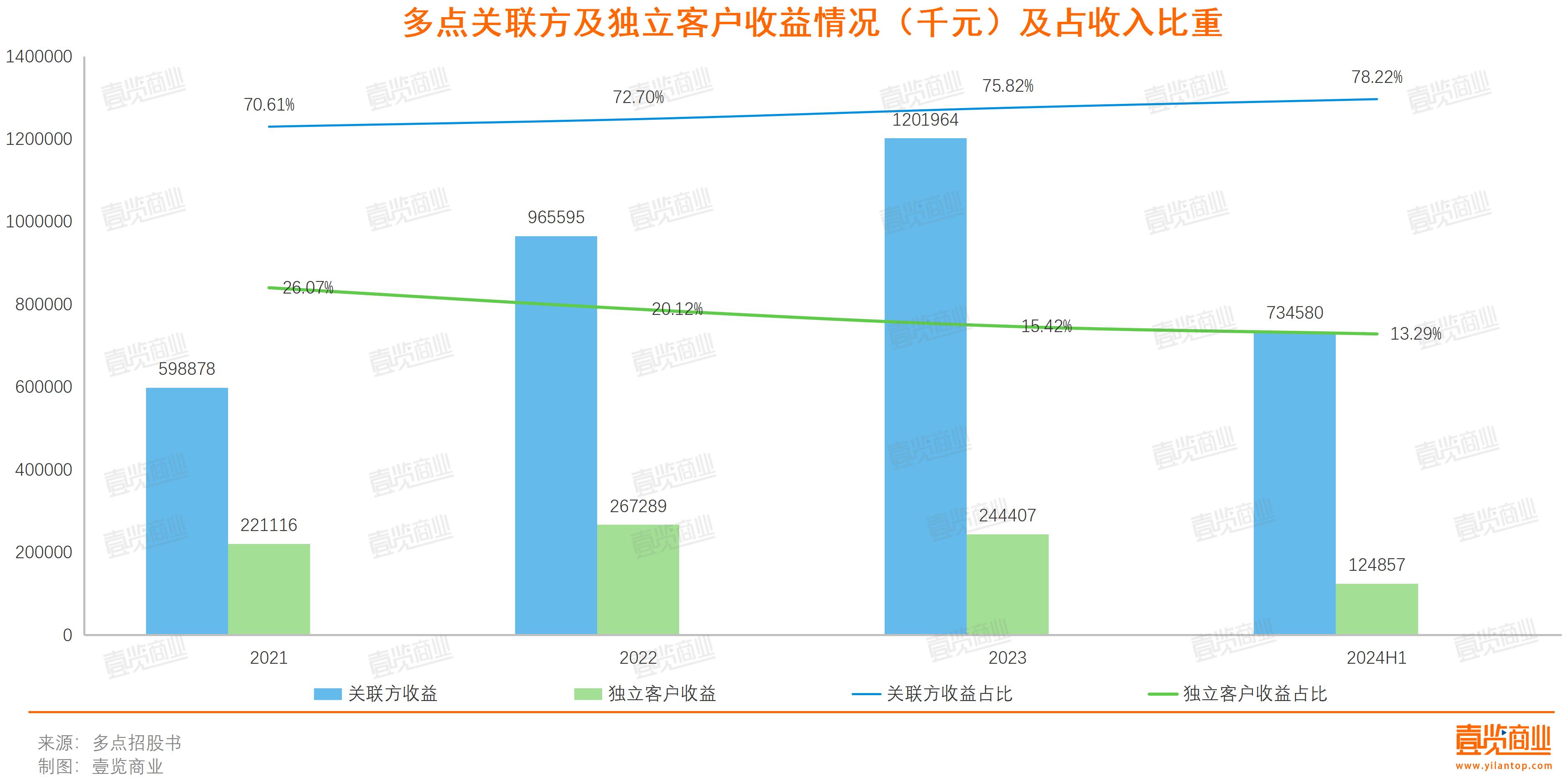 與之相對(duì)的,多點(diǎn)來(lái)自獨(dú)立客戶的收益分別為2.21億元、2.67億元、2.44億元和1.25億元,收益占比分別為26.1%、20.1%、15.3%和13.3%,呈持續(xù)下滑態(tài)勢(shì)。
