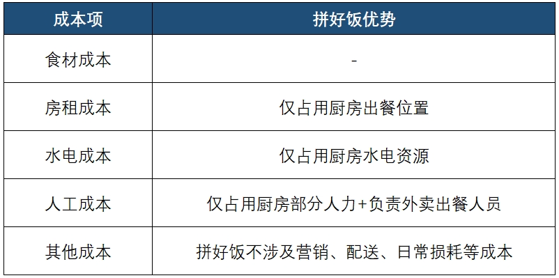 拼好飯的成本優(yōu)勢(shì),資料來(lái)源:紅餐產(chǎn)業(yè)研究院