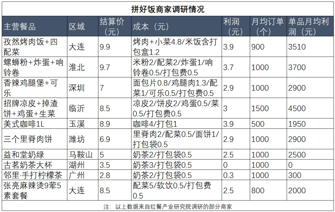 拼好飯的模式是典型的“薄利多銷(xiāo)”,雖然每筆訂單由于客單價(jià)低,利潤(rùn)看起來(lái)很低,但在保底收費(fèi)之下,商家做一單賺一單,多出來(lái)的訂單能帶來(lái)實(shí)實(shí)在在的利潤(rùn)。