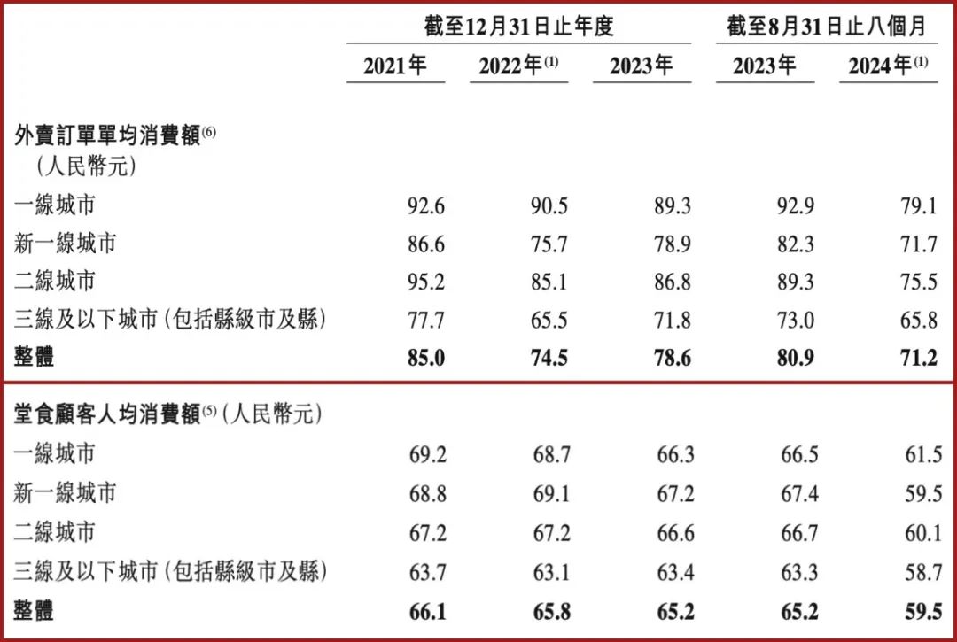 小菜園定位于大眾便民中餐市場(chǎng),是由客單價(jià)決定的。2021年至2023年、以及2024年前8個(gè)月(以下簡(jiǎn)稱“報(bào)告期”),小菜園門店堂食顧客人均消費(fèi)額分別為66.1元、65.8元、65.2元、59.5元。
