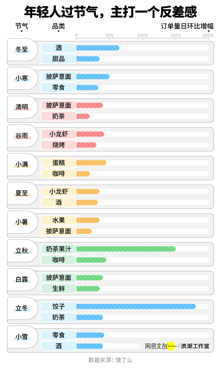 近期,餓了么聯(lián)合網(wǎng)易浪潮工作室發(fā)布《年輕人時(shí)令消費(fèi)趨勢(shì)》報(bào)告。報(bào)告指出,在時(shí)令變換的特定時(shí)刻創(chuàng)造出的“儀式感”,也是年輕人自我情緒表達(dá)的方式。傳統(tǒng)節(jié)氣中的中華智慧與年輕人的創(chuàng)意表達(dá)結(jié)合,通過社交媒體的分享,變成了一種獨(dú)特的情感表達(dá)和生活態(tài)度,也展現(xiàn)了年輕人追求生活品味的一面。