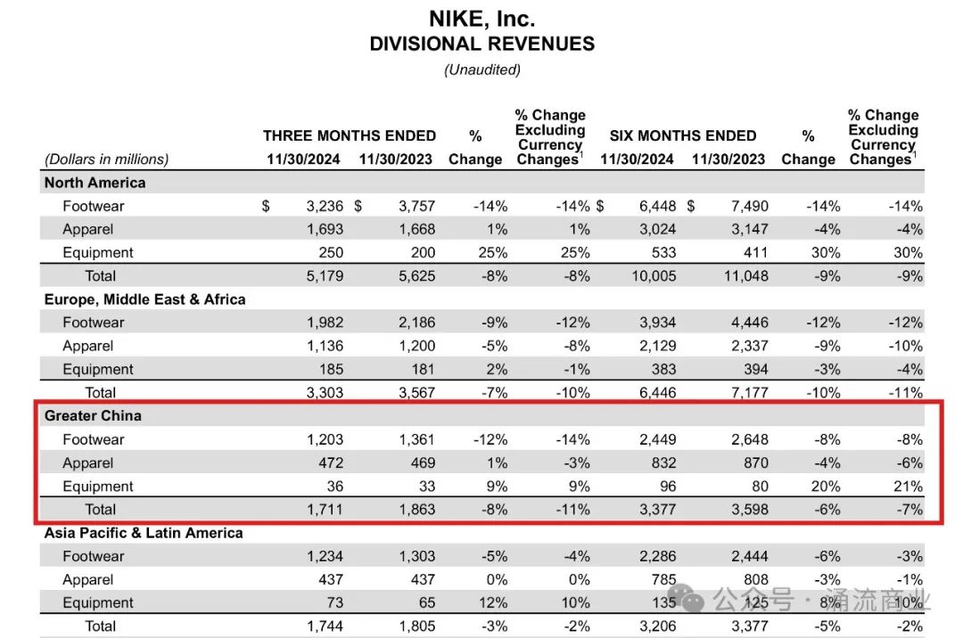 耐克大中華區(qū)一樣在退步:新疆棉危機(jī)解除后,這里曾經(jīng)連續(xù)7個(gè)季度實(shí)現(xiàn)增長(zhǎng),元?dú)饣謴?fù)大半;但現(xiàn)在又已經(jīng)連續(xù)兩個(gè)季度下滑。