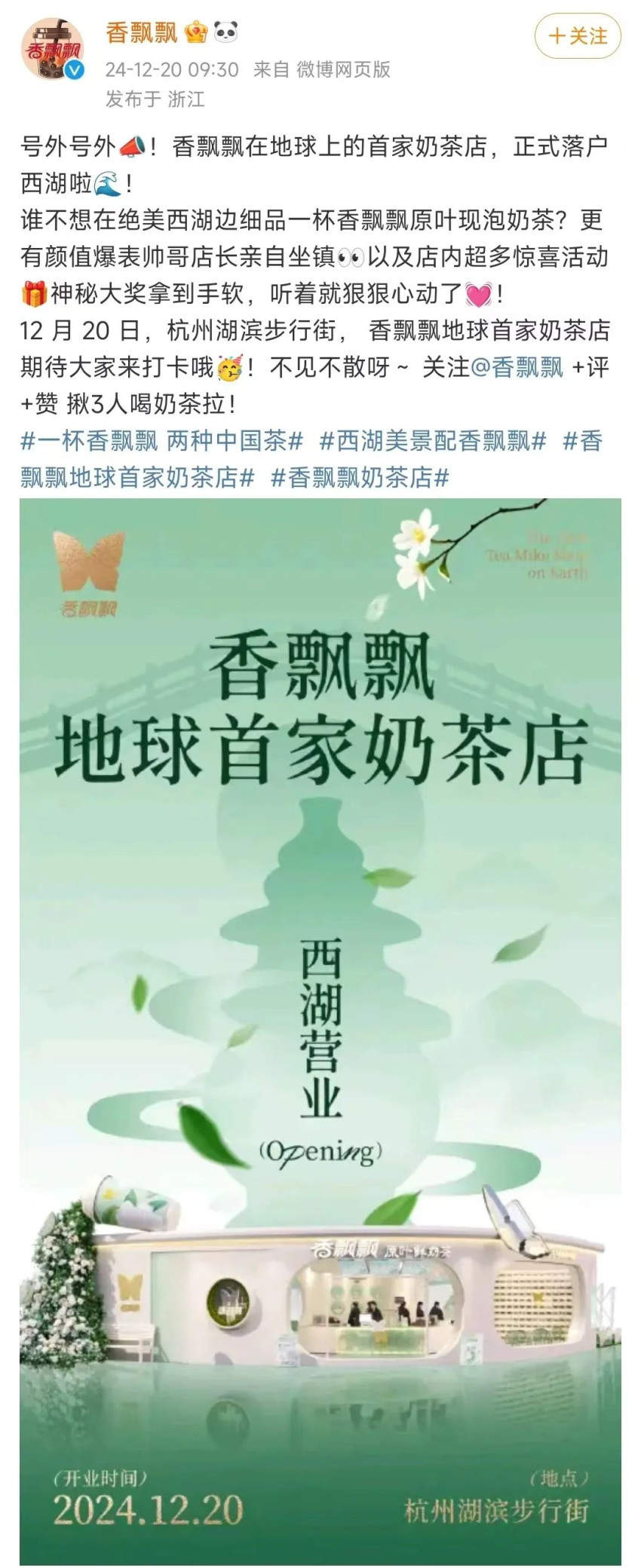 而隨著香飄飄官微發(fā)布推文:“香飄飄在地球上的首家奶茶店,正式落戶西湖!本W(wǎng)友的疑惑被打消,香飄飄首家奶茶店正式落子杭州。