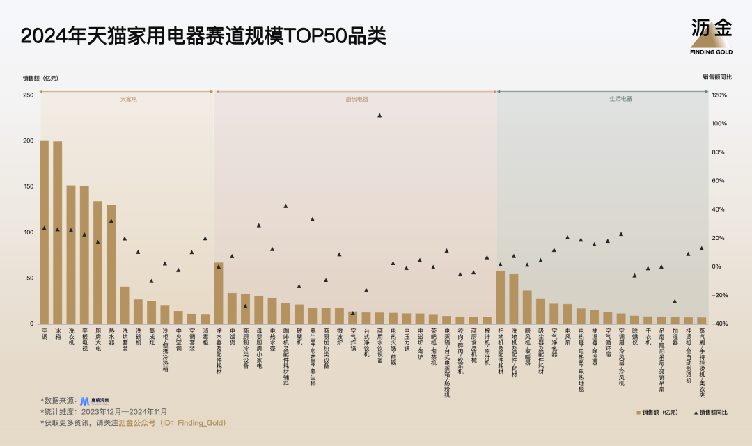 2024年天貓家用電器賽道規(guī)模TOP50品類