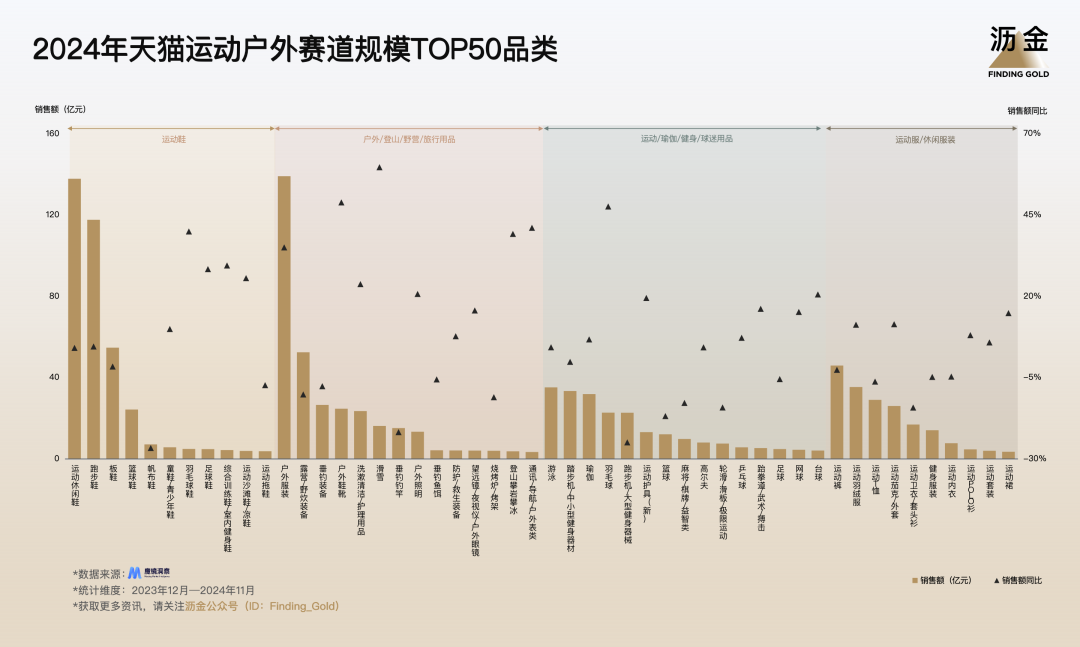 2024年天貓運(yùn)動(dòng)戶外賽道規(guī)模TOP50品類