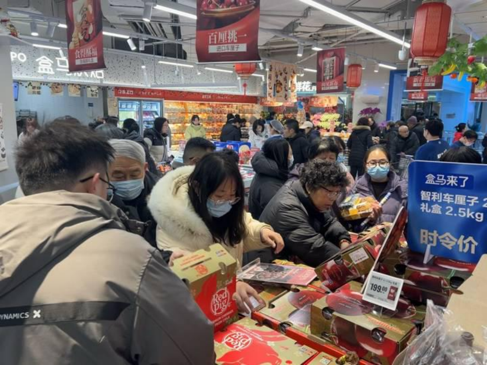 12月24日,盒馬鮮生泰州大衛(wèi)茂店正式開(kāi)業(yè),這是盒馬在江蘇省布局的第十個(gè)區(qū)域。年關(guān)將近,為助力年貨消費(fèi)熱潮,盒馬泰州首店增設(shè)了大量年貨陳列,車?yán)遄、年宵花、?jiān)果禮盒等商品吸引不少市民前來(lái)選購(gòu)。