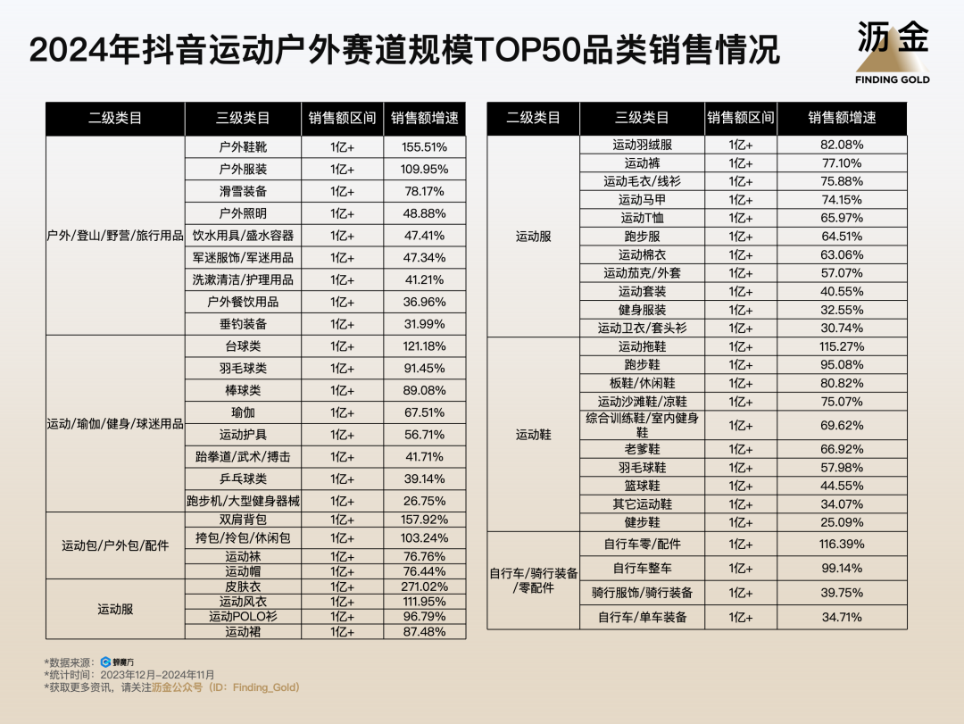 2024年抖音運(yùn)動(dòng)戶外賽道規(guī)模TOP50品類