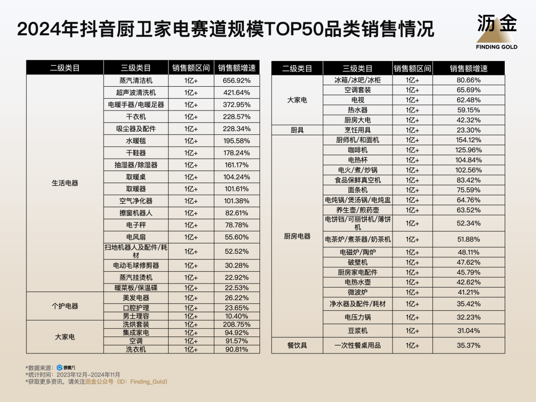 2024年抖音廚衛(wèi)家電賽道規(guī)模TOP50品類
