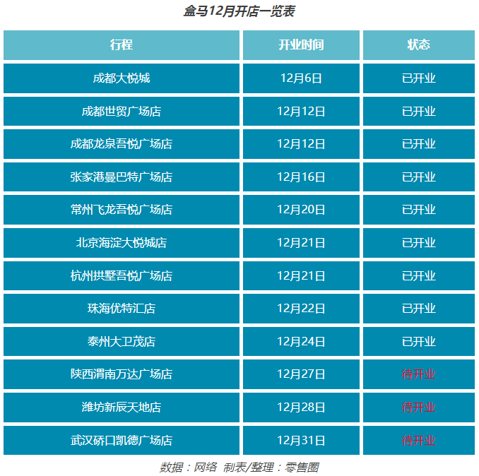 加速下沉!盒馬12月新開超過10家門店