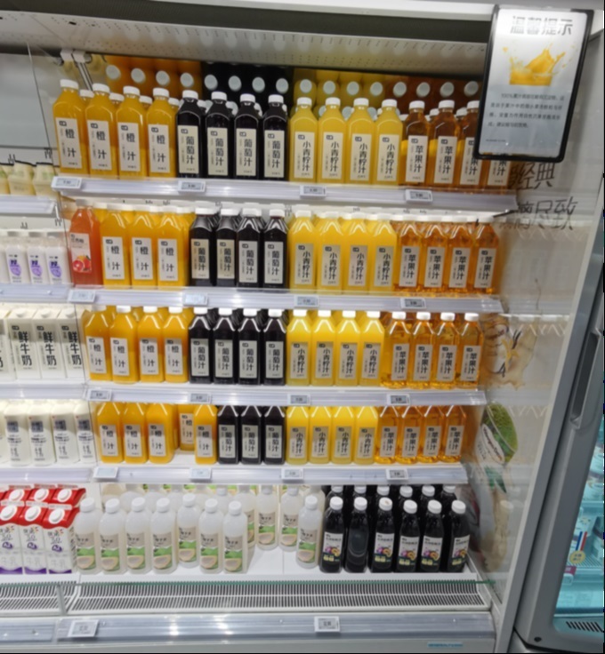 點(diǎn)評:在冷藏飲品分類(包括冷藏果汁和冷藏鮮奶),盒馬鮮生的OEM系列對比京東七鮮的OEM系列在商品的豐富度和外包裝的顏值上要明顯領(lǐng)先于京東七鮮,同時通過現(xiàn)場試飲相似商品,筆者個人認(rèn)為盒馬鮮生的商品口感要好于京東七鮮。