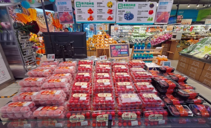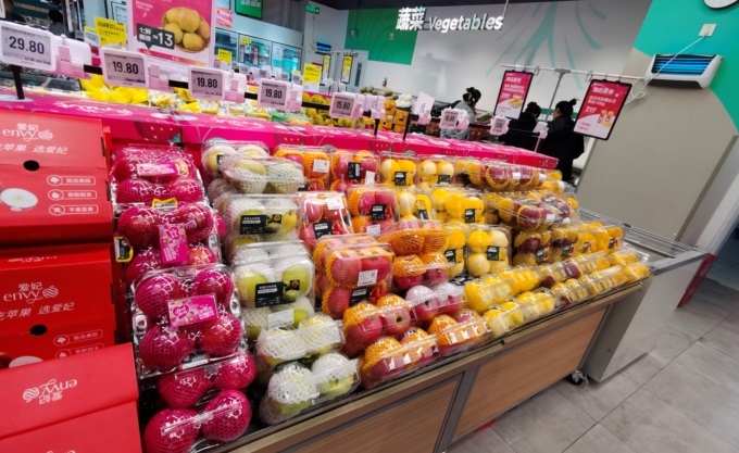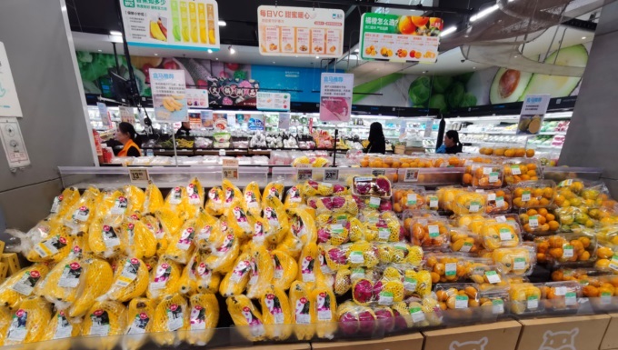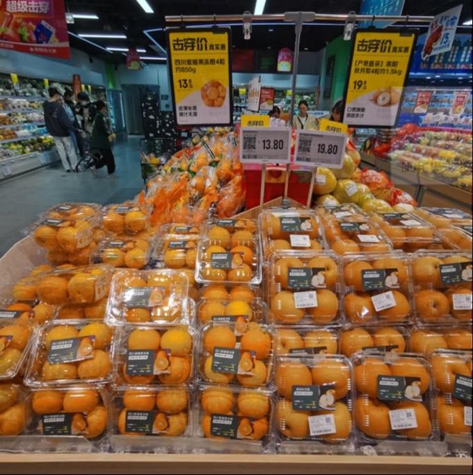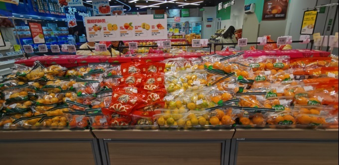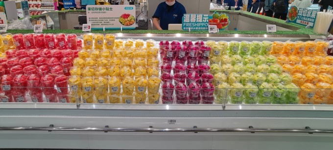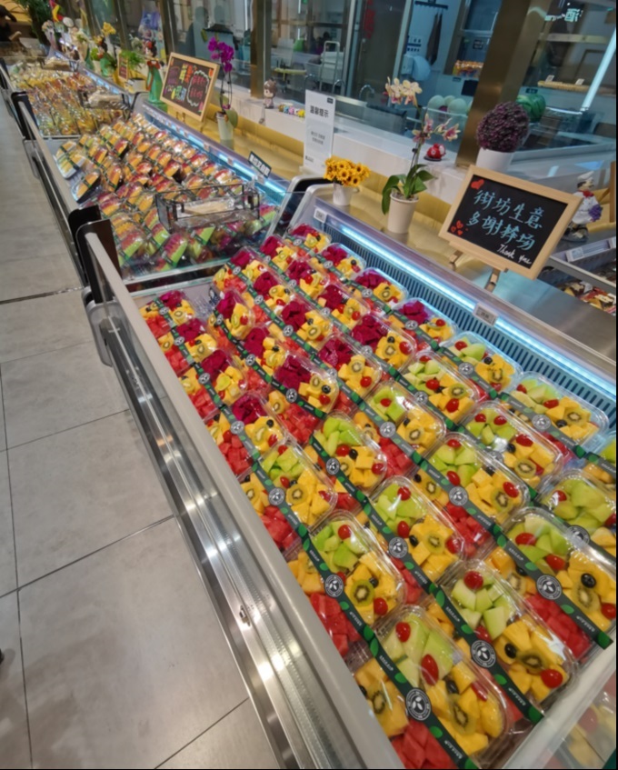 點(diǎn)評:通過對比,我們發(fā)現(xiàn)在水果品類上,京東七鮮主要著重經(jīng)營蘋果、梨、橙、香蕉等常規(guī)水果;而盒馬鮮生則重點(diǎn)著重經(jīng)營差異化較明顯的地標(biāo)性小品種水果和時令漿果類,同時兼顧常規(guī)基礎(chǔ)水果經(jīng)營。另外,兩者都非常重視鮮切果切的經(jīng)營,并進(jìn)行了重點(diǎn)放大陳列。因此,盒馬鮮生在水果的豐富性和差異性上要明顯優(yōu)于京東七鮮。