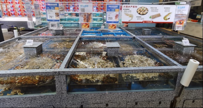 以下是盒馬鮮生海鮮水產(chǎn)品類照片: