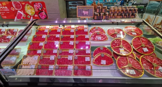 點(diǎn)評:盒馬鮮生在進(jìn)口安格斯谷飼牛肉和鮮切黃牛肉的經(jīng)營上,豐富度明顯優(yōu)于京東七鮮,同時盒馬鮮生在牛肉分類上已經(jīng)形成燉、煮、烤、煎、涮不同烹飪方式商品矩陣,差異化非常明顯。