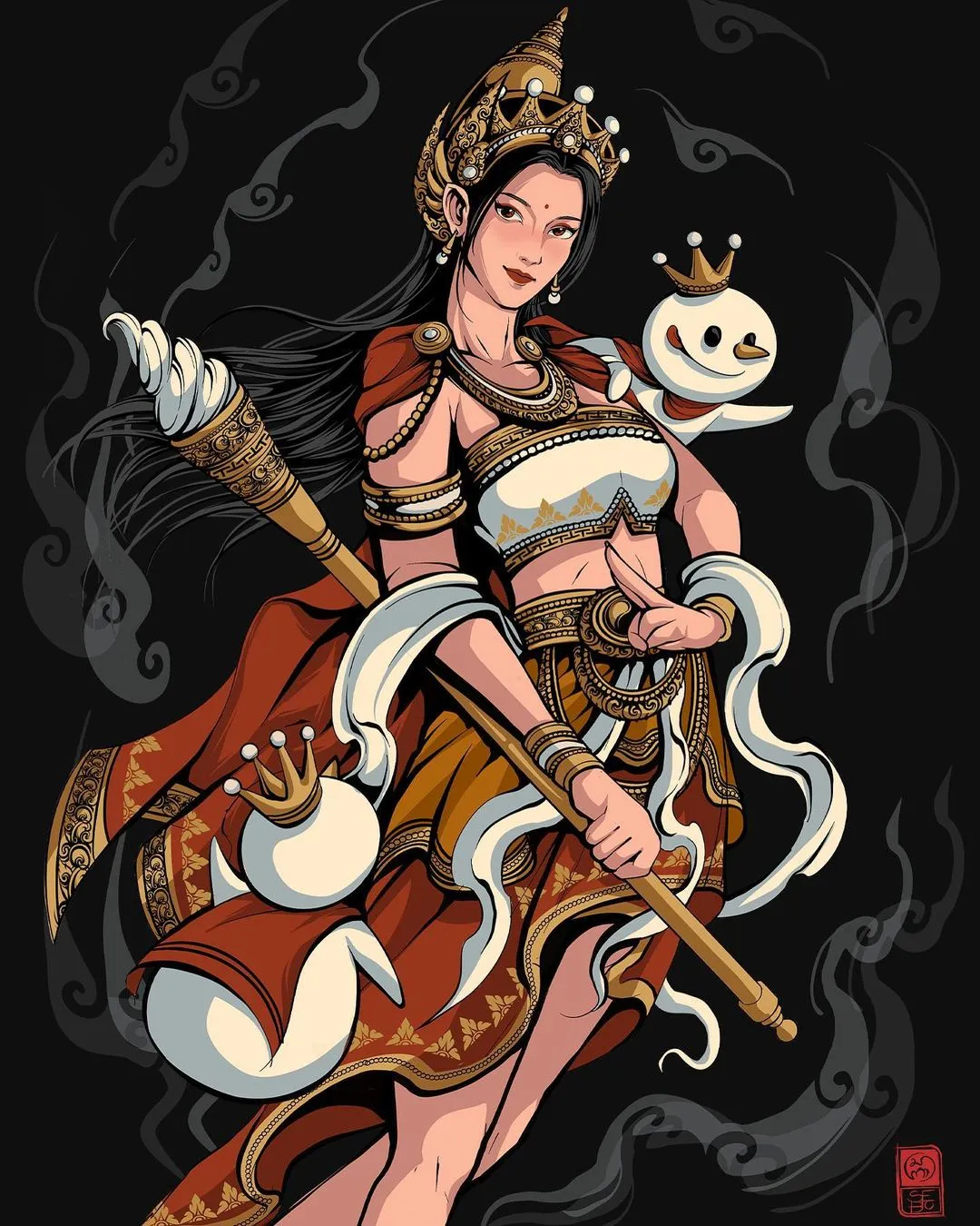 印尼當?shù)厮囆g家 Tuangga1 創(chuàng)作雪王與本土女神互動的場景