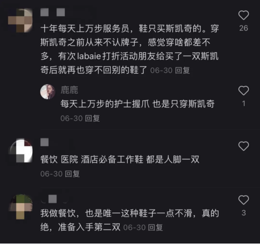 當這股潮流從底層社畜打工人傳到領(lǐng)導(dǎo)層后,一些人性化的企業(yè)甚至直接采購起斯凱奇的平底鞋當工鞋,只為了讓你在服務(wù)客戶時既能健步如飛,又能像鞋子一樣耐磨抗造。