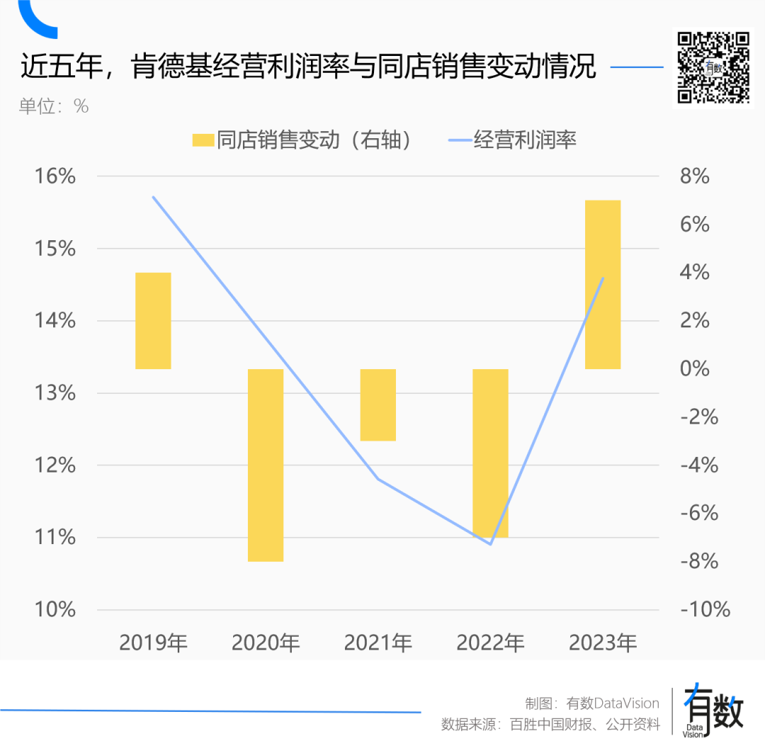 反應(yīng)到公司的財(cái)務(wù)指標(biāo)上,2019年,肯德基經(jīng)營(yíng)利潤(rùn)高達(dá)15.7%,三年后,這個(gè)指標(biāo)降到了10.9%。