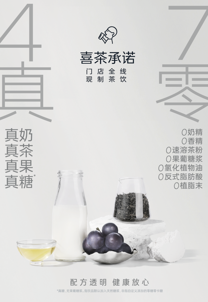 在產(chǎn)品之外,喜茶也推出多項健康舉措。年初,喜茶邀請帕梅拉·萊孚擔任2024年“喜茶健康推薦官”;推出「果茶·控糖計劃」,宣布全線水果茶產(chǎn)品“真0卡糖”免費,至今獲超1800萬人次選擇;上線了行業(yè)首個「咖啡因紅綠燈」健康標識,對產(chǎn)品咖啡因含量進行分級公示并提供飲用指引;2024年7月,喜茶更是發(fā)布“史上最嚴”的「四真七零」健康茶飲標準,明確提出健康真茶飲是以“真茶、真奶、真果、真糖”為原料,全線產(chǎn)品符合“0奶精、0香精、0果葡糖漿、0植脂末、0氫化植物油、0反式脂肪酸、0速溶茶粉”的要求,為消費者帶來兼具健康與風味的飲品。