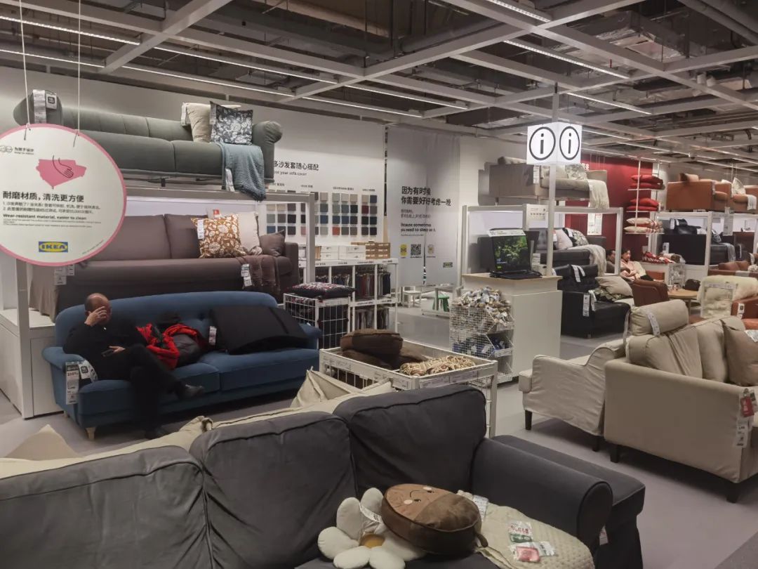 在十年前,在宜家的沙發(fā)上午休,甚至在樣板床上蹭一個(gè)午覺(jué),還是不少宜家商場(chǎng)聊以自詡的一道風(fēng)景線。如今,門可羅雀也不至于,我們編輯在店里看到,在沙發(fā)上休息,在樣板間里辦公拍照刷手機(jī)的人還是不少,但人流確實(shí)沒(méi)有以前多了。