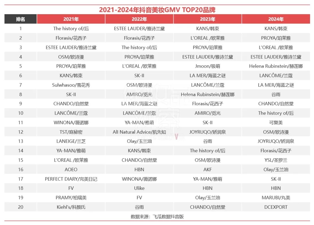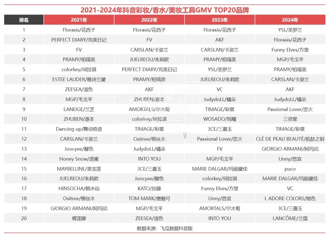 2024抖音美妝TOP20出爐,國(guó)貨11席,最高超65億