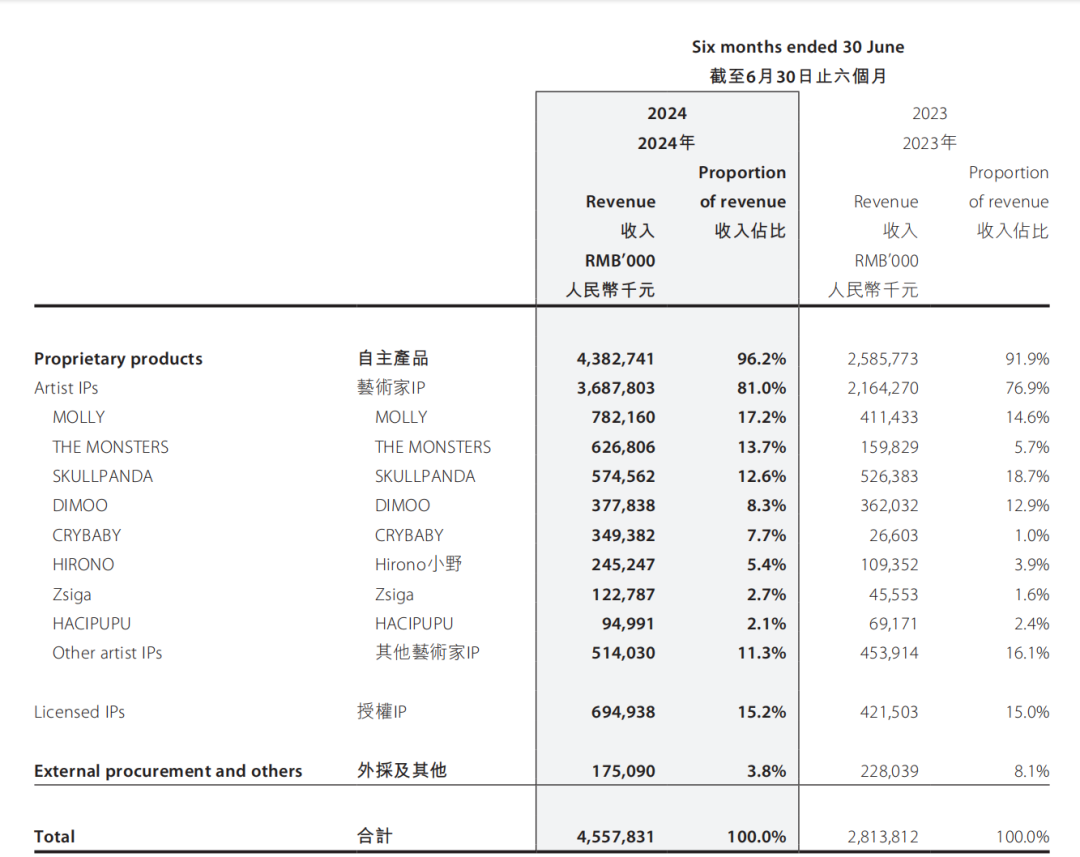目前泡泡瑪特收入過(guò)億的IP就有7個(gè),運(yùn)營(yíng)了8年的Molly系列依然能帶來(lái)7.8億的營(yíng)收,而這兩年爆火的Labubu所在的The Monsters系列和Skullpanda系列營(yíng)收均突破了5億。