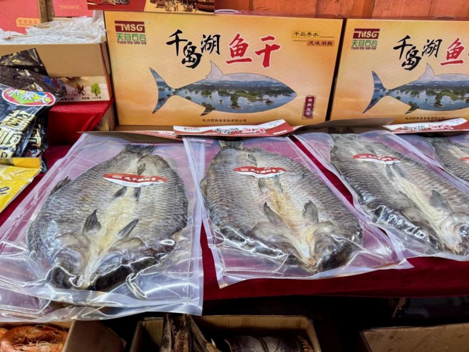 天目石谷食品攤位的千島湖青魚干則從廠家直接拿貨,零售價(jià)30元,這次年貨節(jié)25元一斤。