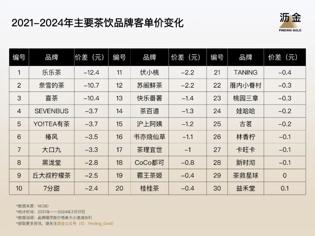 主流茶飲品牌客單價變化 來源:NCBD