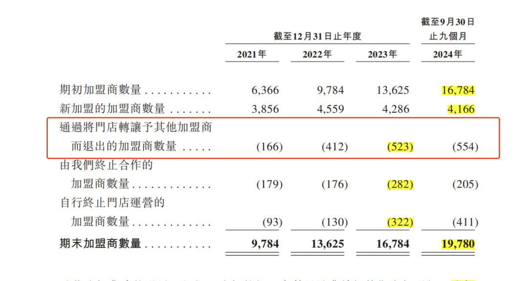 蜜雪冰城同期被其終止合作的加盟商數(shù)和自行終止門店經(jīng)營的加盟商數(shù)量也在明顯增加,古茗在招股書中主動提到,新加入的加盟商流失率通常較高。