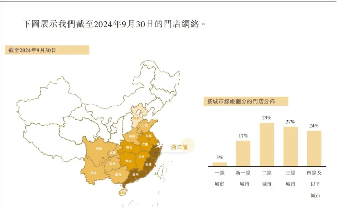 截至2024年前三季度,在中國內(nèi)地,蜜雪冰城超4萬家門店中,57.2%的門店都在三線及以下城市,而古茗三線及以下城市門店數(shù)占比達51%。