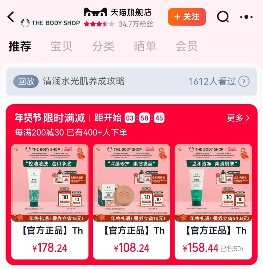 截自抖音美體小鋪The body shop官方旗艦店